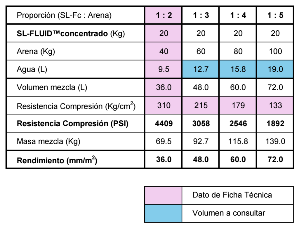SL-FLUID™concentrado ofrece una formulación con aditivos de alto desempeño que al mezclarse con agua y arena seleccionada (en relaciones desde 1:2 hasta 1:5), se obtiene un producto autonivelante libre de contracción para espesores de 10 a 80 mm.